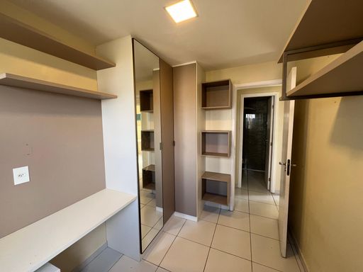 Apartamento com 68m², bem distribuído, com 3 quartos (2 suítes, sendo 1 reversível), móveis planejados e 2 vagas de garagem.