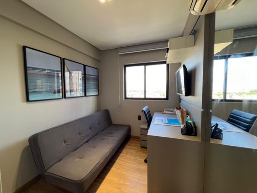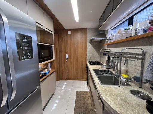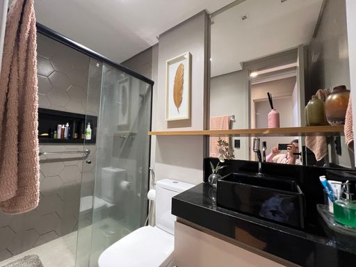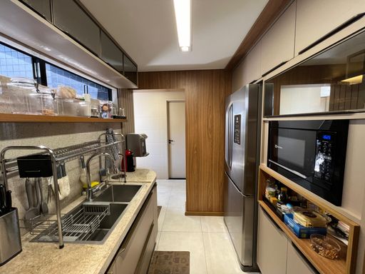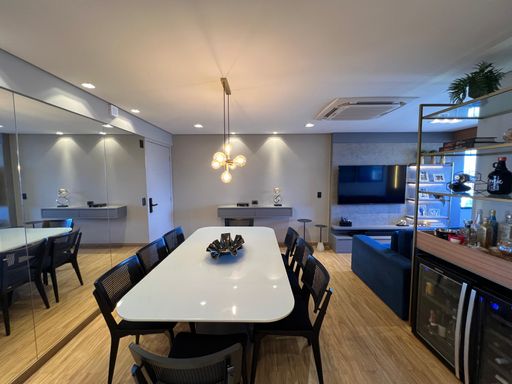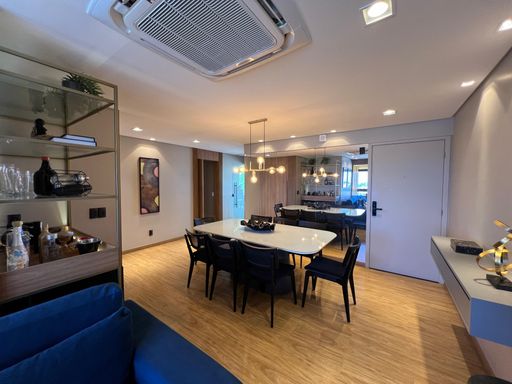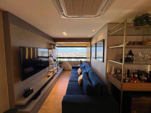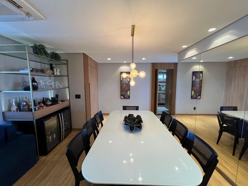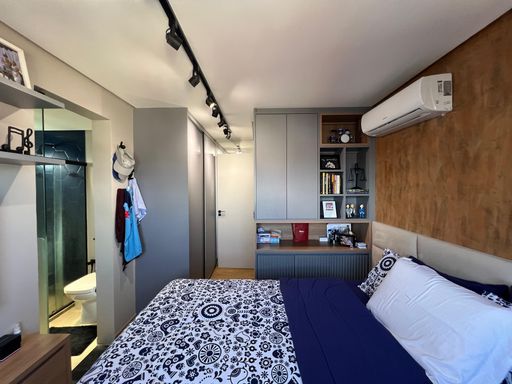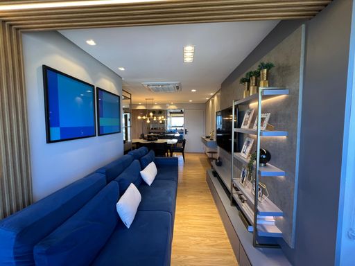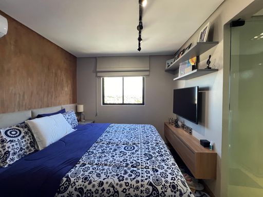 O imóvel conta com 3 dormitórios, sendo 1 suíte master, todos equipados com móveis planejados de alta qualidade. A atmosfera do apartamento é de puro bem-estar, ideal para quem busca um lar com personalidade e elegância.