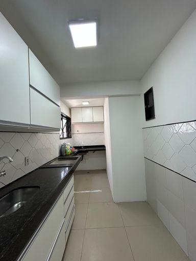 Cozinha com armários e área de serviço