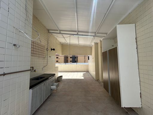 Amplo terraço com chuveiro e pia para churrasqueira