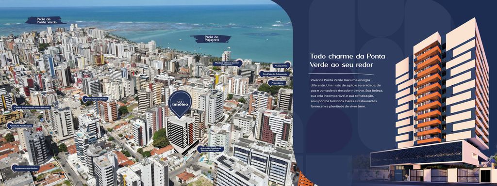 More em um empreendimento moderno localizado em uma das regiões mais valorizadas de Maceió, próximo à praia de Ponta Verde e cercado por restaurantes, supermercados, academias, farmácias e toda a conveniência do bairro.